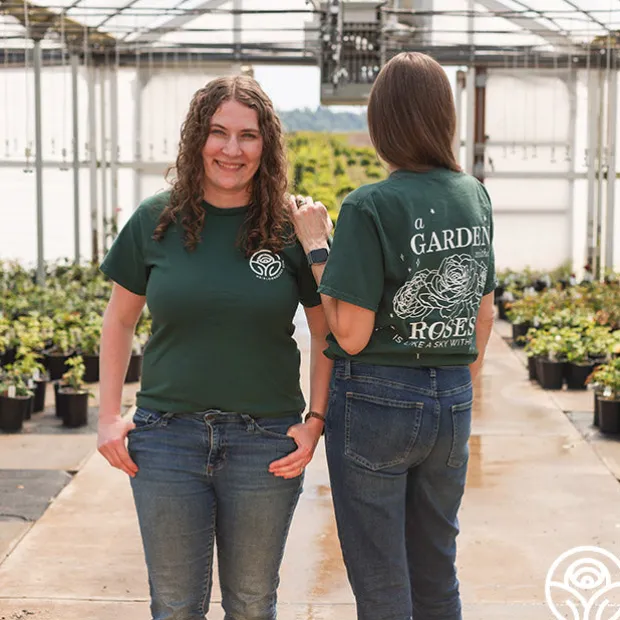 Your new favorite gardening shirt is here! No garden is complete without roses and now you can wear your love of roses with this beautifully designed tee. In a deep, calming green, our 2025 Heirloom Roses tee works well as garden wear or with your favorite pair of jeans. Can you guess which hand-drawn roses we added to the design?