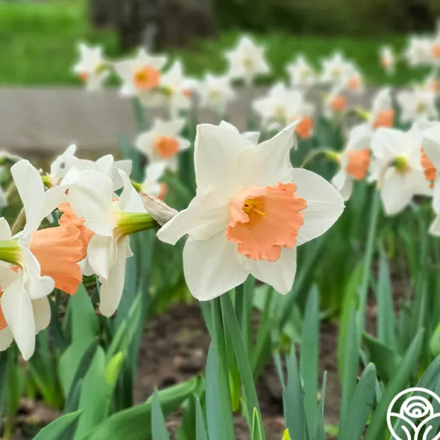 Note: Bulbs ship starting in October based on availability and your zone, unlike other products. Plant around or after your first frost but before the ground freezes. Accent features crisp white petals and a rich coral-pink cup that deepens with age, creating a striking two-tone bloom. Its 16–18″ stems hold large, showy flowers that stand out in both garden beds and spring arrangements. A reliable mid-spring bloomer that returns year after year and resists deer.