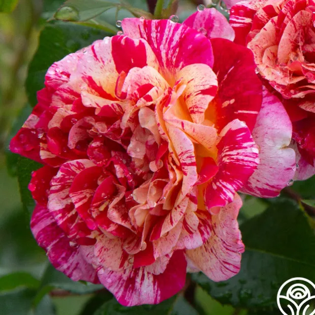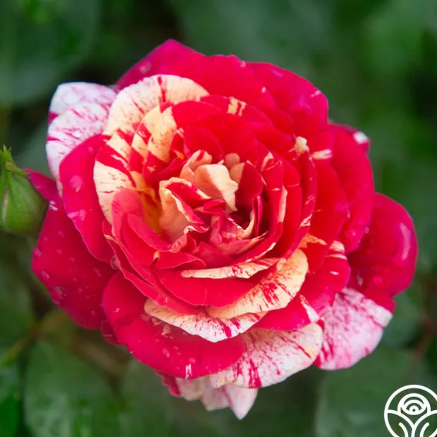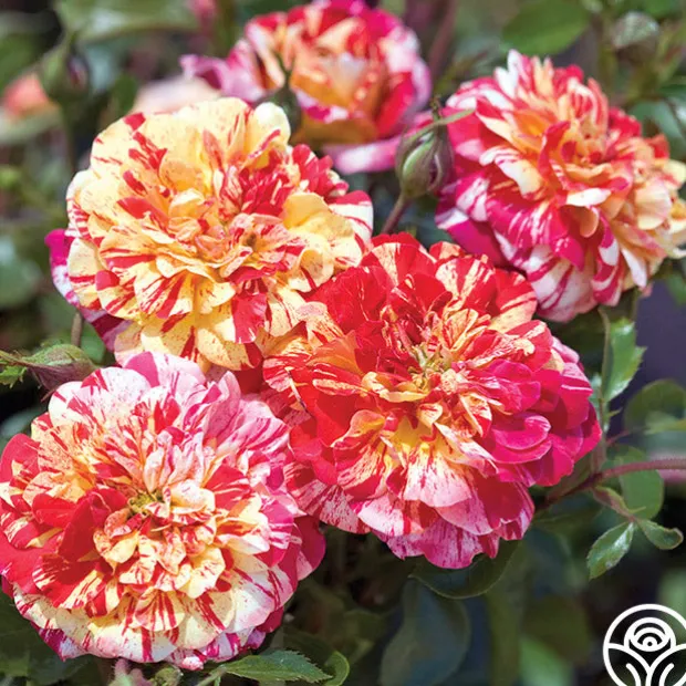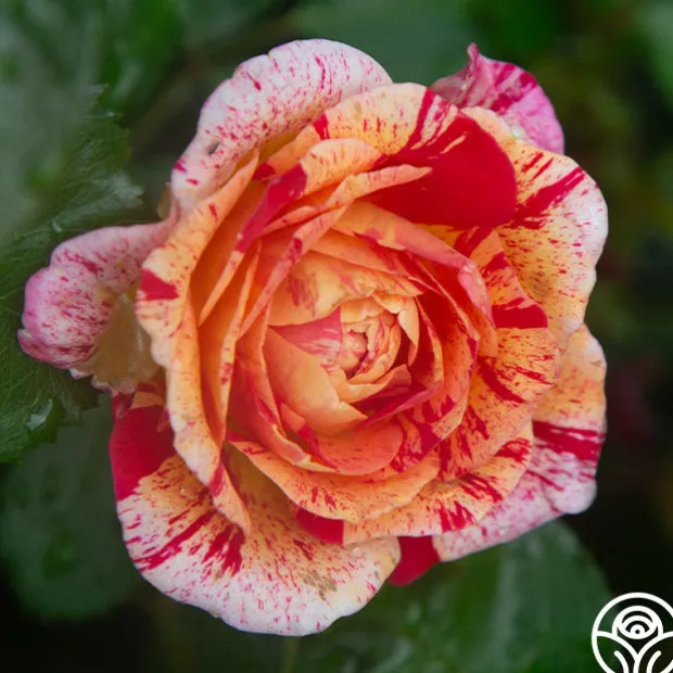 Splattered with a color explosion of red, pink, and yellow, All-American Magic™ is one of the hardiest and disease-resistant striped roses. She has a mild raspberry fragrance and blooms in flushes throughout the season, growing to about 4-5’ in height. With up to 60 petals per flower and randomly distributed coloring, no two blooms are ever alike! She truly is a gem for the rose garden.