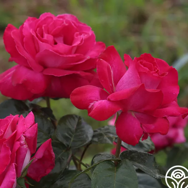 HIGH DISEASE RESISTANCE! Baronne E. de Rothschild® was a top contender in the 1998 Montreal Botanical Garden’s disease resistance tests, showing strong resistance against blackspot, rust, and mildew. She is a bi-colored rose displaying a crimson red bud opening to deep pink petals with a silvery reverse. Her large, 5” flowers are comprised of 40+ petals and have an amazingly strong, rose perfume, with leathery, bronze-green, glossy foliage. Baronne E. de Rothschild® frequently has clusters of flowers on one stem with a long vase life which makes her an excellent cut flower for any grower.