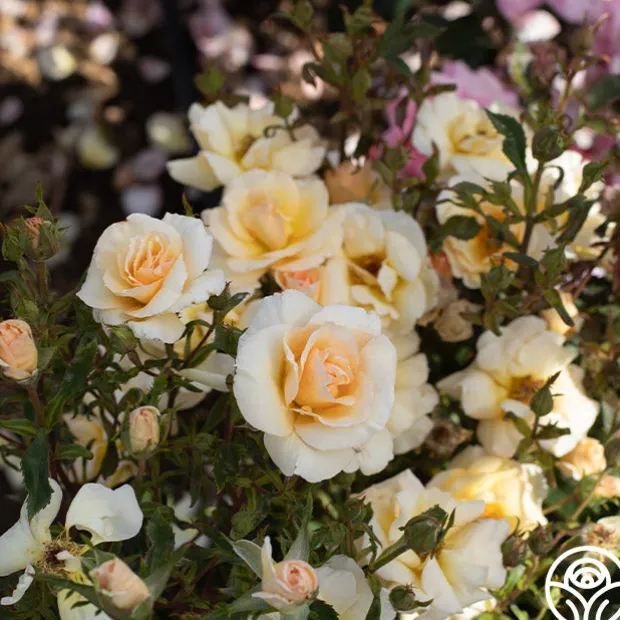 The soft apricot-shaded, buff, 3 ½” blooms of By Appointment™ are fully double with 24+ petals and are produced in lovely sprays on straight stems. This continual blooming rose has one of the prettiest bud forms and shapely blooms and is perfect for arrangements. By Appointments™ is a vigorous, disease-resistant, upright bush that covers itself with dark green foliage that makes a dramatic background for its delicately beautiful blooms.