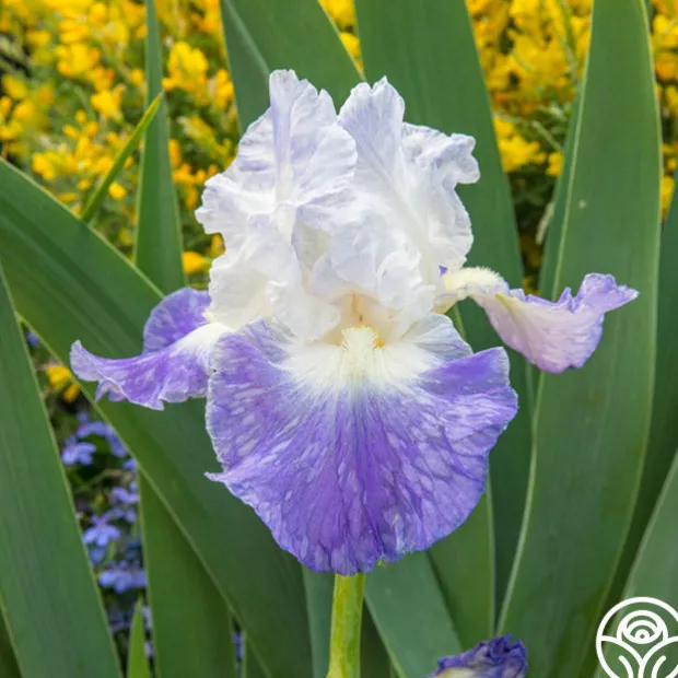 Note: Bulbs ship starting in October based on availability and your zone, unlike other products. Plant around or after your first frost but before the ground freezes. Clarence is a reblooming, tall Bearded Iris with icy pale blue-to-white standards and rich blue falls edged in dark navy. The softly ruffled blooms pack a sweet fragrance and appear in mid-spring, then bloom again in late summer to early fall, giving you two seasons of color. It grows about 35″ tall, is hardy in Zones 3–9, deer resistant, and makes an excellent choice for cut flowers.