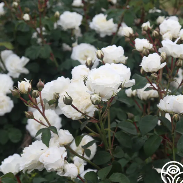 HIGH DISEASE RESISTANCE! Cloud 10™ is a vigorous hybrid Climber that blooms heavily in the spring and continually throughout the season. Her pure white, very full blooms have 50-60 petals that are similar to English Roses. The cupped blooms are 2- 2.5” in diameter and borne in clusters. She has exceptionally clean foliage. If your garden struggles with disease, Cloud 10™ is for you. She is resistant to blackspot and almost immune to rust and mildew. This rose performs great everywhere, especially in the south and in areas troubled with blackspot.