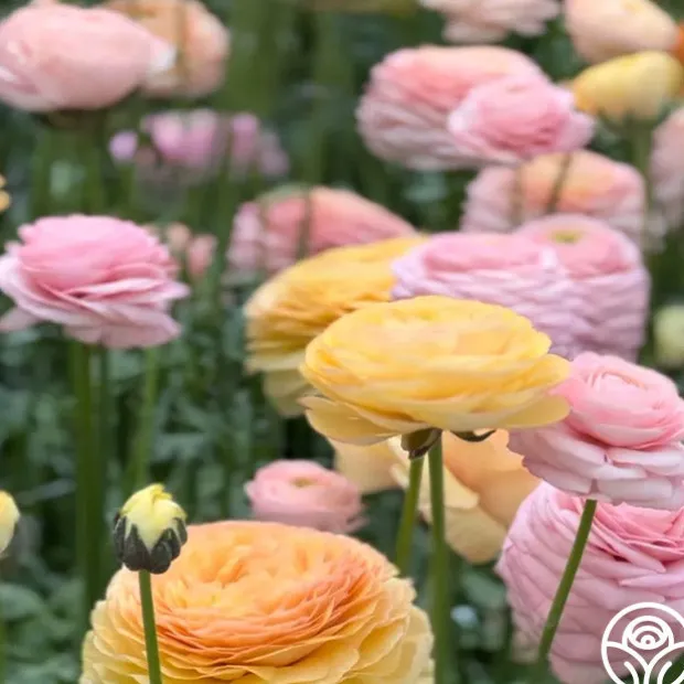 Note: Bulbs ship starting in October based on availability and your zone, unlike other products. Plant around or after your first frost but before the ground freezes. Elegance Pastello “La Dolce Vita” Mix is a soft pastel Ranunculus blend featuring creamy whites, blush pinks, peaches, and light apricots. The fully double blooms measure 3–4″ across and sit on strong 12–16″ stems, making them perfect for cutting. Bred in Italy for long-lasting performance, this mix offers a coordinated palette of soft, romantic tones that bloom in late spring.