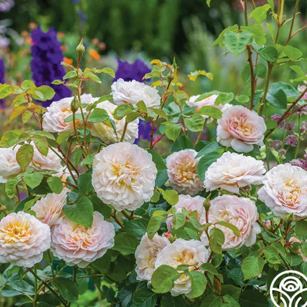 As you draw near, you’ll be enveloped by a fragrance that’s a testament to the rose’s sophistication. The initial strong Tea scent gently transforms into the timeless allure of Old Rose with delightful hints of lemon and grapefruit. Emily Brontë, named to commemorate the bicentenary of the renowned novelist’s birth, grows into a robust, bushy shrub with a vigorous, upright growth pattern, ensuring she becomes a standout feature in your garden.