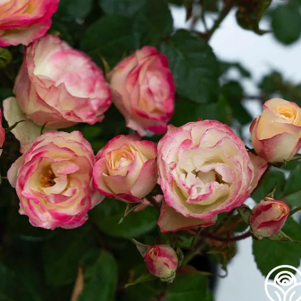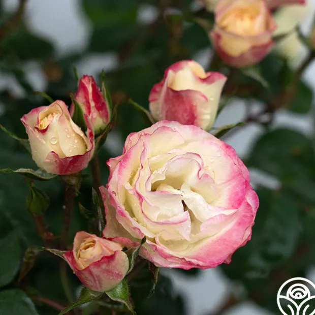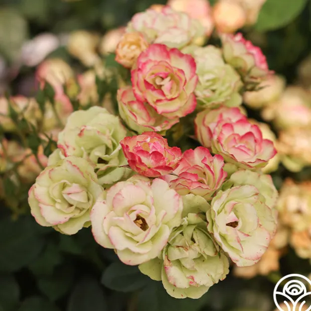 Exclusive New Introduction: Welcome to the garden, Enchanted Meadow™! This unique rose lives up to her name with the coloring of a wild meadow in shades of cream, pink, and very unique green. Enchanted Meadow’s compact blooms are prolific on this disease-resistant rose by Will Radler. She thrives in zones 5 and up with a delightful rounding habit around 3’. Expect more pink color in cool temperatures and more green in hotter temperatures. She might even fool you into thinking she is a Hellebores blossom!