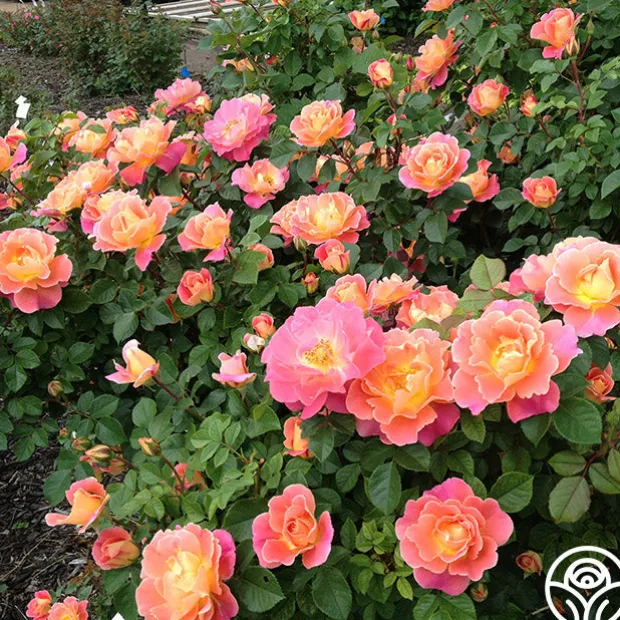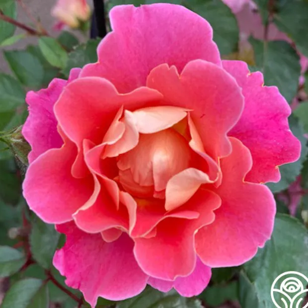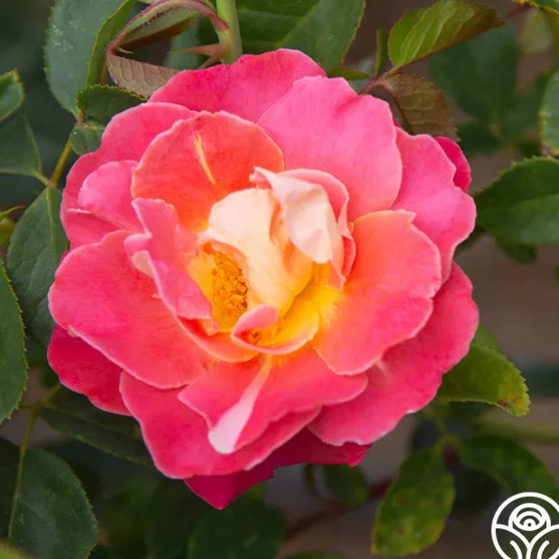 Fruity Petals™ is a tall Climber with uniquely shaped blooms of coral and yellow coloring, almost as bright as the childhood cereal you remember! Her ruffled petals are ombre colored with edges dipped in intense coral, fading to apricot, and culminating in a bright yellow center. Expect Fruity Petals™ to explode with blooms early in the spring and continue to bloom profusely through the entire season. She is very disease resistant and does especially well when given a trellis or arbor to support her as she climbs.