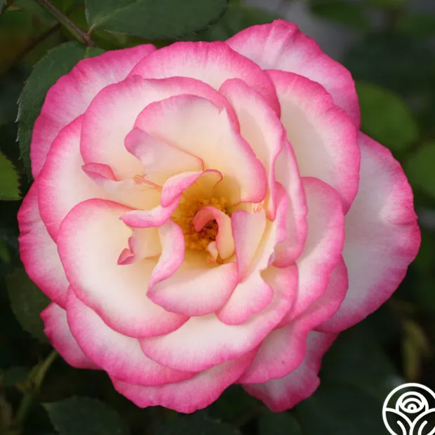 Bred in Ireland, Handel is a strikingly beautiful, well formed, bi-color rose with double, 4″ blooms and 20+ petals. The blooms are pure white edged with bright, strawberry-red. Blossoms are carried in profusion throughout the season on a vigorous, upright Climber with a light fragrance of clove.