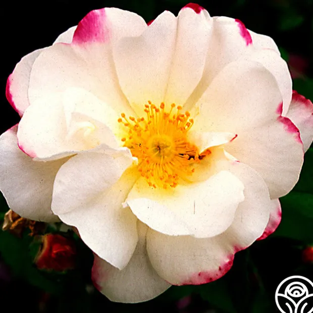 Hebe’s Lip is a delicate white to nearly white blend Damask with cherry-red edges and pink undertones – truly a delight for the eyes! She has a strong fragrance that gently wafts from her semi-double cluster blooms. While she is a once-bloomer, she creates a massive display in the garden. She has dark green foliage and can be quite thorny, but her fragrance makes up for it! Expect weeks’ worth of a stunning display of flowers.