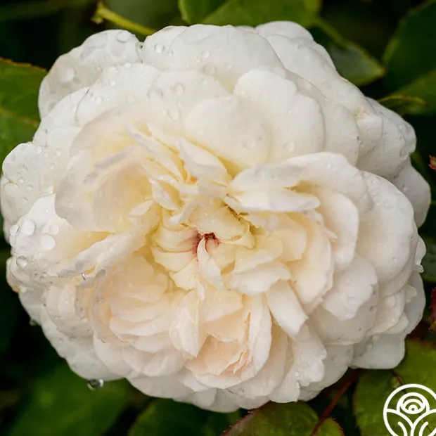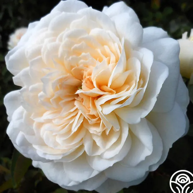 Heirloom Roses was very proud to name this exceptional Shrub rose of our own hybridizing efforts in honor of the elegant star from the golden age of movies, Joan Fontaine™. The wonderful, fragrant 4” blooms with 75+ begin with buds of soft, flesh pink and open to a creamy white with a glowing touch of amber in the center. The fully double, English-style flowers are carried on a striking, continual blooming plant with deep-green foliage.