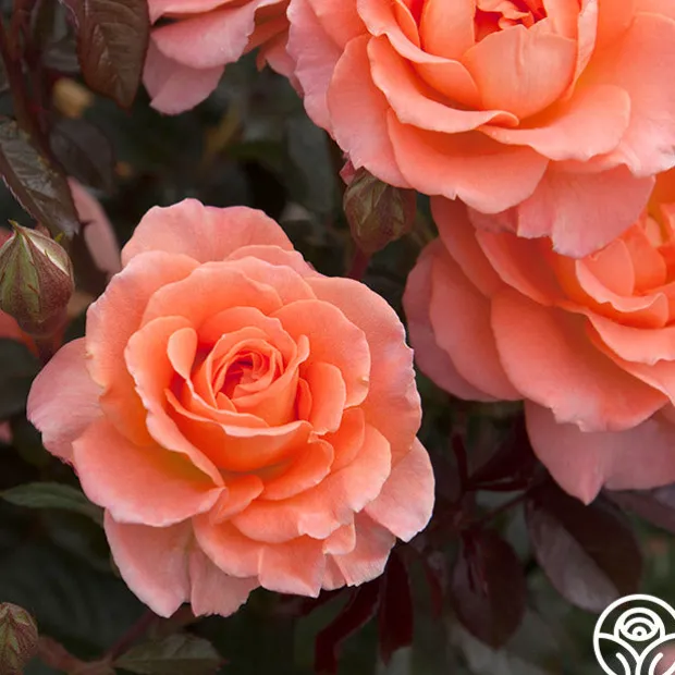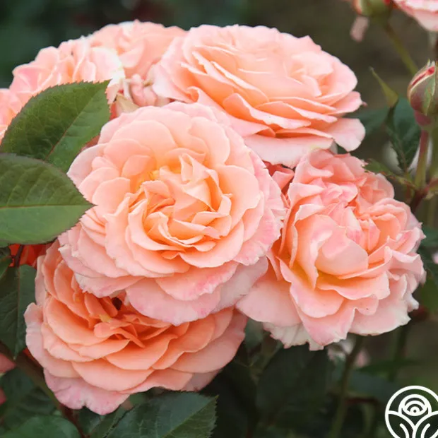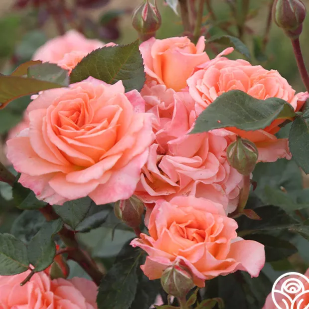 Jump for Joy™ is a Floribunda rose with large 3-4″, ruffled blooms that are borne in clusters on a round, bushy shrub. The delicious, peachy-pink color pairs well with its light apple fragrance. Expect her dark red new growth to pop against glossy, green foliage. We recommend planting Jump for Joy™ alone or with her sister seedling, Sparkle & Shine™ for a burst of color in your garden.
