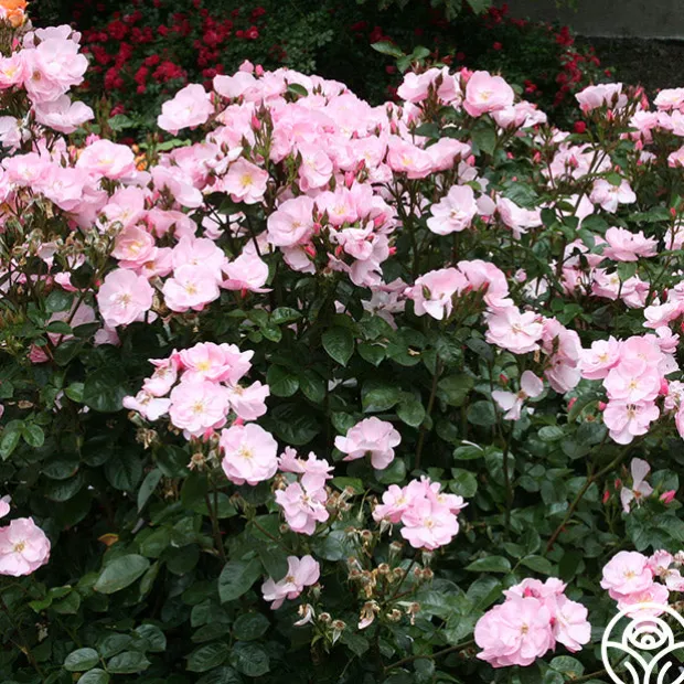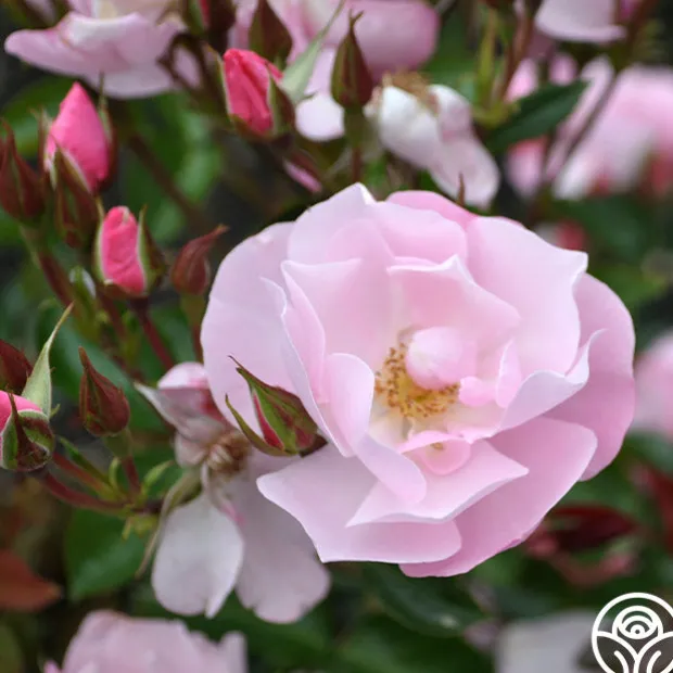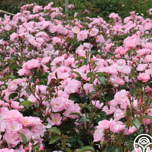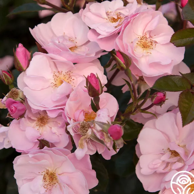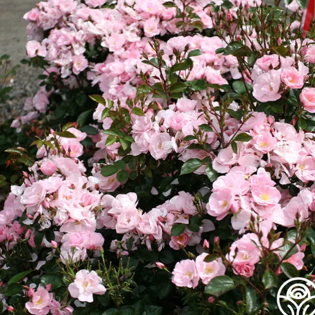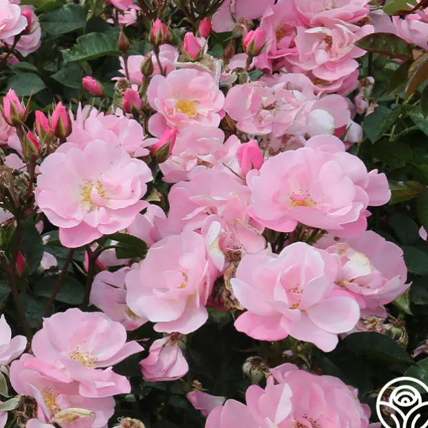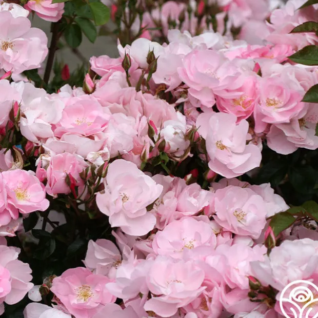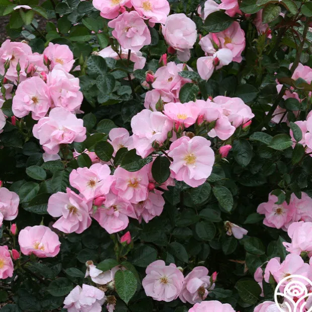 A beautiful little shrub rose, Kateryna™ presents delicate, 2 ½” blooms with 12 petals in a lovely, soft, shell-pink. Her flowers are produced in large clusters on a compact, repeat blooming, spreading bush with glossy, dark-green foliage. Kateryna™ is excellent for the front of the border in perennial gardens or as a landscape specimen plant.