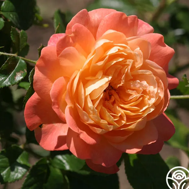 Lawrence of Arabia™ is a perfect desert sunset painted across the petals of this lightly perfumed 5” rose with 90+ petals per bloom. His eye-catching shade of apricot-gold and cherry-coral feature an old-fashioned look with the modern benefits of massive yields of blooms against rich, glossy foliage. Lawrence of Arabia™ is a compact, continually blooming rose that is very easy to grow.