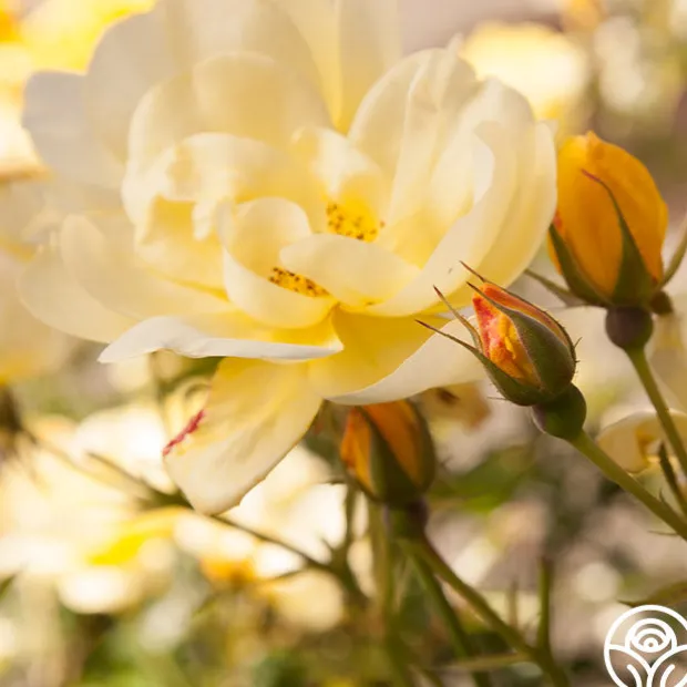 Morning Has Broken™ is one of Heirloom Roses’ finest Shrubs from our hybridizing program. Bred from Graham Thomas® X Gold Badge, this is an outstanding yellow Shrub. Named for an old Scottish hymn and Louise’s favorite song for many years, Morning Has Broken™ has the most beautiful, rich yellow, semi-double 3 ½” blooms with 15+ petals. Her blossoms change ever so gradually to soft yellow and literally cover the bush. This disease resistant, repeat blooming rose will also hold up well in the heat.