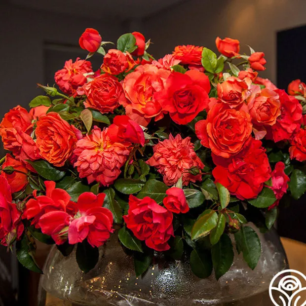 This rose was named to honor the life and legacy of world-renowned leader and peacemaker Nelson Mandela. A tall growing Floribunda with clusters of vermillion-orange flowers and a subtle but striking fragrance, the Nelson Mandela rose symbolizes the harmony of class and humility that Mandela embodied. A neat and upright growth habit makes this rose an outstanding statement piece as well as a good screen or hedge.
