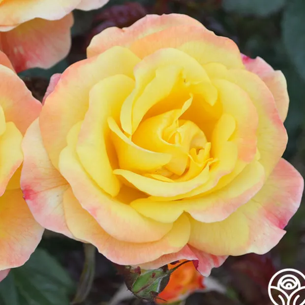Reaching up to 10’ tall, Night Light® is a citrus-scented Climber with perfectly formed 4″ blooms of 30+ petals in a blend of yellow and soft red. This continual bloomer makes an excellent cutting rose for arrangements but tends to be somewhat thorny. She is perfect for zones 5-10.