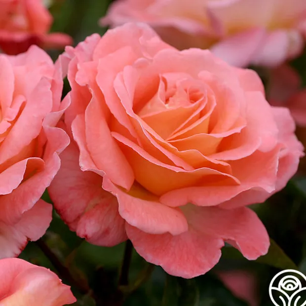 Paul Shirville features fully double, 4” blooms in the most perfect salmon tones with watercolor-brushed petals. This continual bloomer from Harkness has a heady, sweet fragrance and was the winner of the Edland Fragrance Medal from the Royal National Rose Society of England. Paul Shirville is a medium sized, continual blooming, bushy plant with shiny, dark-green foliage. A perfect addition for your cut garden or for lovers of strong, rose fragrance.