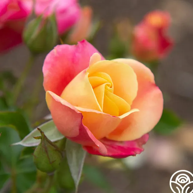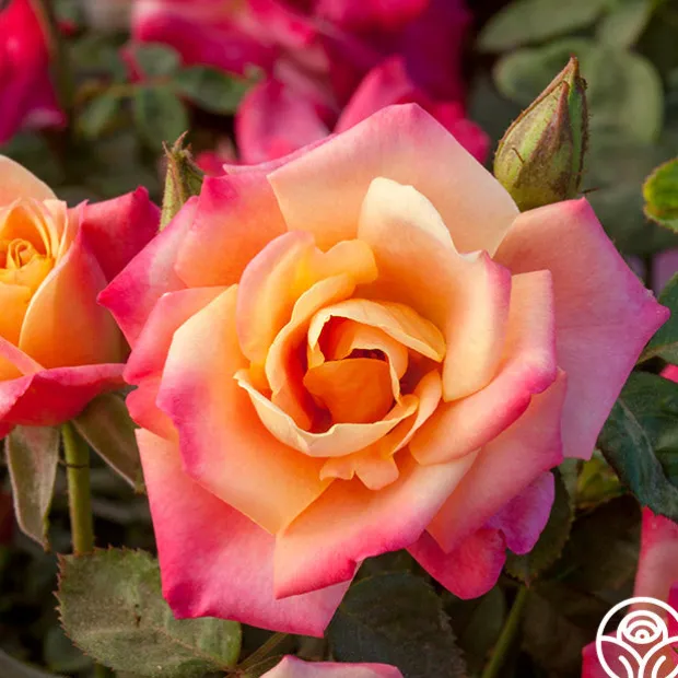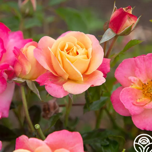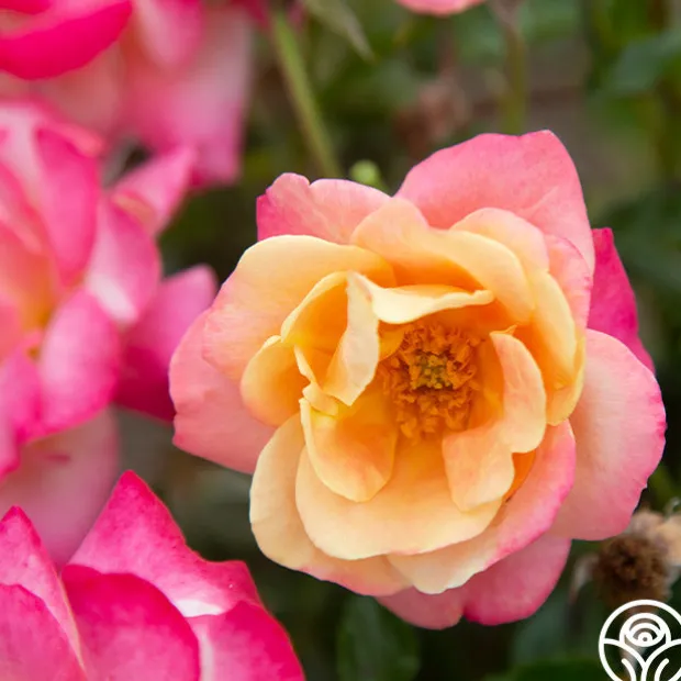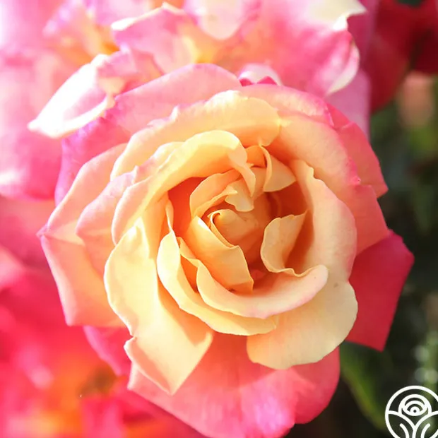 Polynesian Punch™ is a compact Floribunda Rose staying around 4’ tall by 3’ wide, making her a perfect choice for containers on patios, porches, and balconies. She is an over-achiever producing a non-stop, massive display of blossoms in a kaleidoscope of colors from orange to pink to yellow. With so much color, it’s like having several roses in one! Her blossoms average 2.5” with 15-17 petals. Polynesian Punch™ is best suited for the dry climate of the West Coast in zones 6-9.