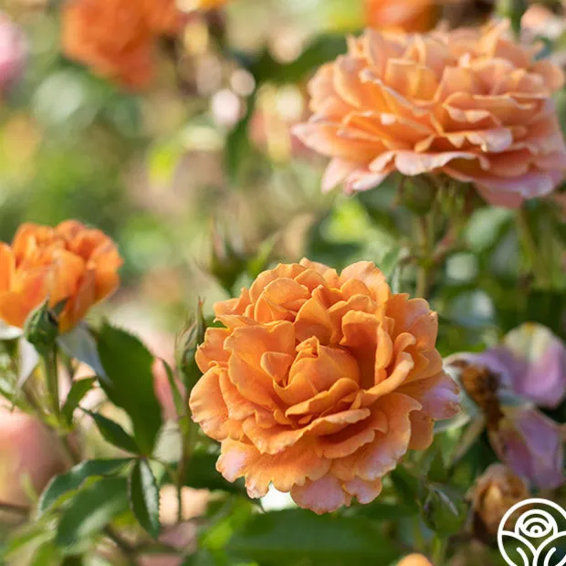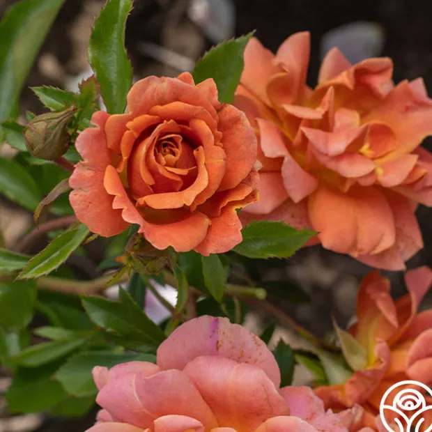 Pumpkin Patch™ is a cute, well-rounded, and compact rose with flowers in the eye-catching color of coppery orange with a hint of pink as she ages. Her coloring mimics pumpkin pie as a nice contrast to the shiny, green leaves. We love her in pots or beds for zones 5-10.