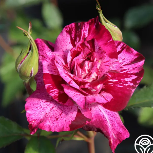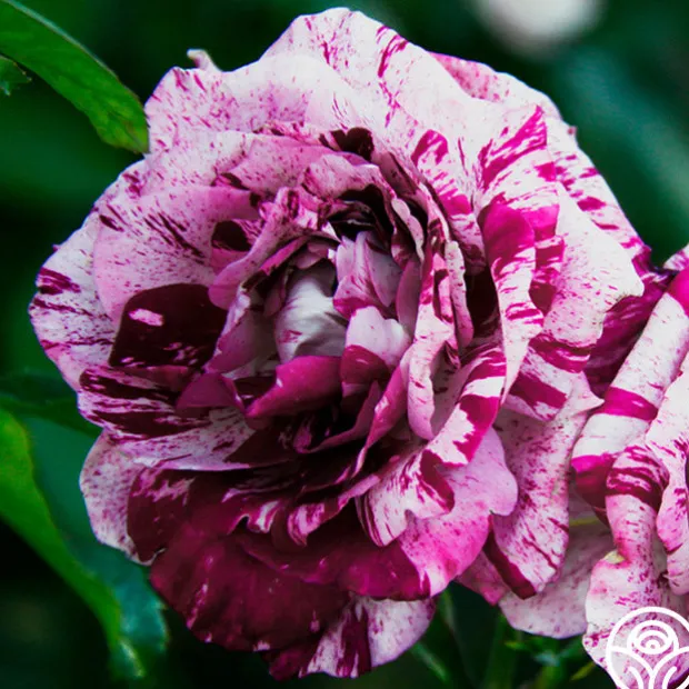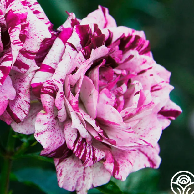 TOP SELLER! Prepare to be stunned by the unique splash of Purple Tiger. Each unique bloom and petal seems to explode in a colorful rhythm of slashes, dashes, streaks, and dots as if splattered on by an artist. A citrus-sweet perfume and minimal thorns are an added bonus! Any lover of purple roses must add this rose to their collection.