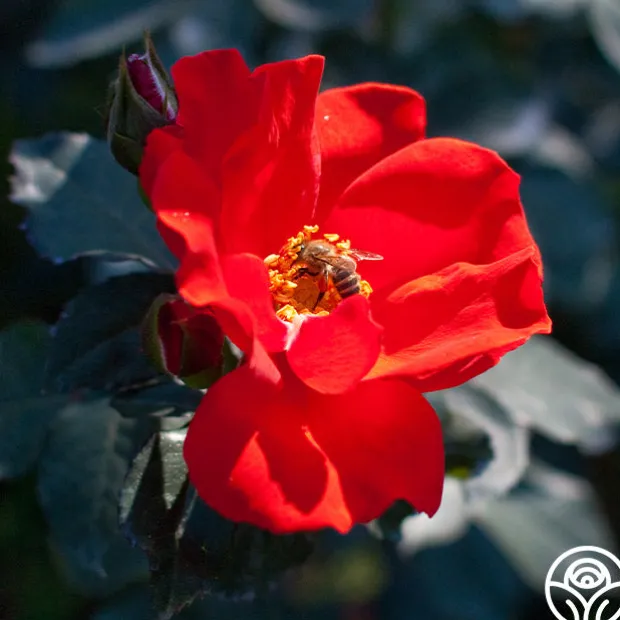 Sarabande® pushes out blossoms that are a light orange and red blend, blooming in large trusses. Her semi-glossy foliage, slightly fragrant perfume, and low bushy growth is bound to attract attention. She is a great choice for pots and will attract a variety of pollinators to your garden.