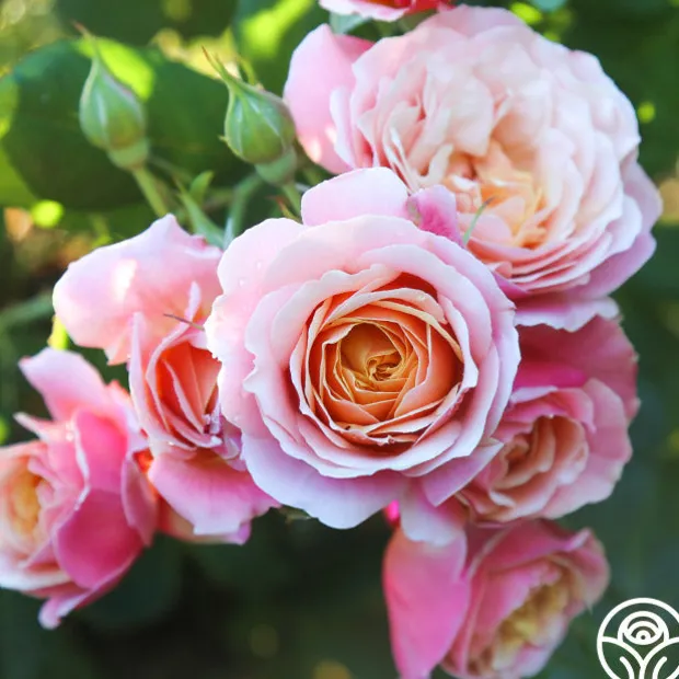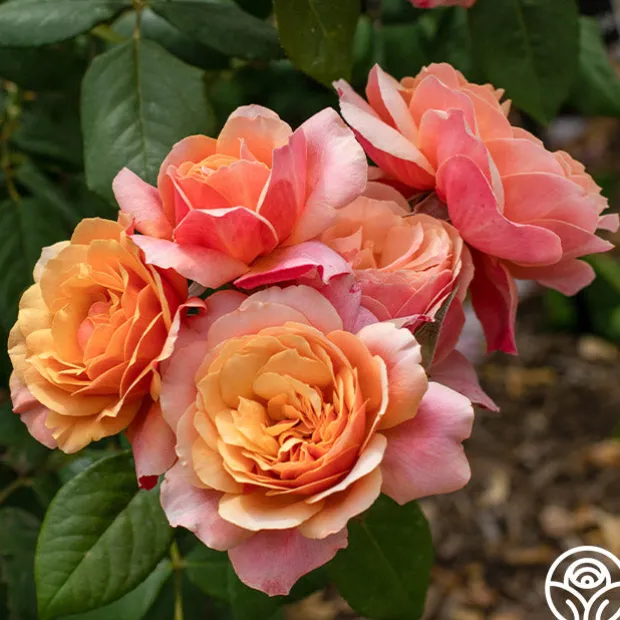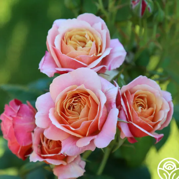Bred in the US, this English-style rose has a compact, tidy habit, and great disease resistance. Reaching 3-4’ in height, this rounded bush will bloom in flushes throughout the season and wow with its multicolored flowers of soft apricot-gold and dark pink reverse petals. With long, strong stems and a fruity fragrance, this rose is a must-have addition to any home garden or cut flower farm. State of Grace™, with gorgeous, double blooms opening to golden centers, will welcome not only neighbors but also butterflies and pollinators to your yard.