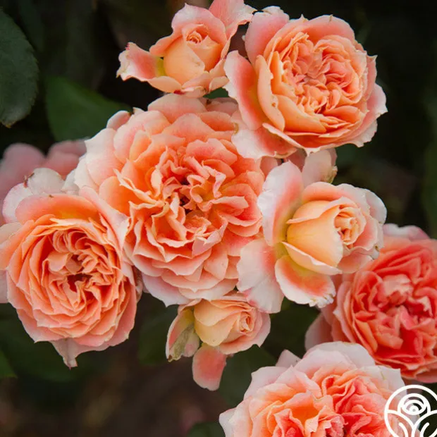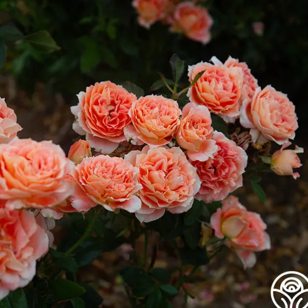 Tangerine Streams™’ roses display a unique blend of orange colors that grow on an ornamental, bushy form despite its compact size. She is well suited for small gardens or along walkways and does well on the west coast. Tangerine Streams™ can be grown on the east coast with special attention to disease control. Her medium, double petaled blooms are displayed in small clusters and grow against semi-glossy foliage all summer long. While she lacks in fragrance, Tangerine Streams™ will impress you with her abundance of flowers and spectacular blend of apricot-salmon hues accented with shades of yellow and orange.