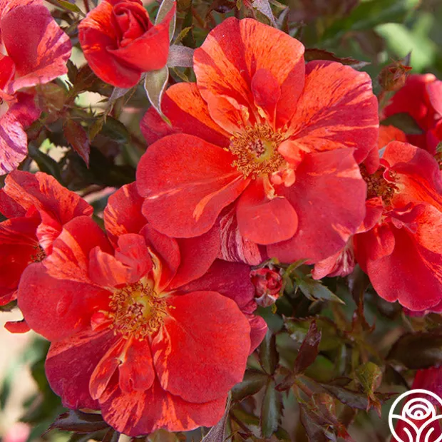 At first glance you may wonder if this is really a rose! Tawny Tiger is so different with her rich, dark orange, semi-double 4” flowers striped with terracotta and brown for a dramatic effect. She rewards with a profusion of blooms on a continual blooming bush. Keep her front and center for maximum impact.