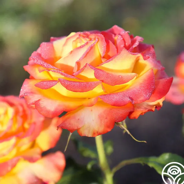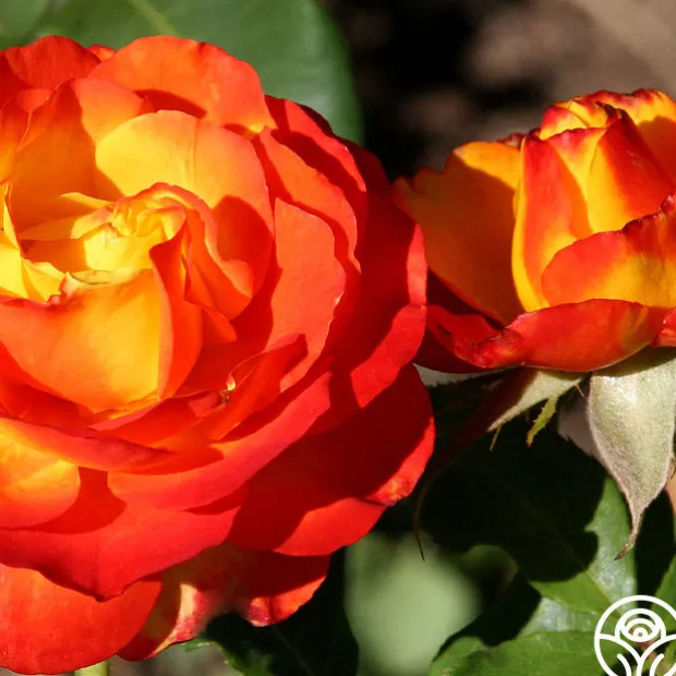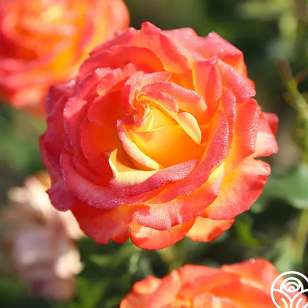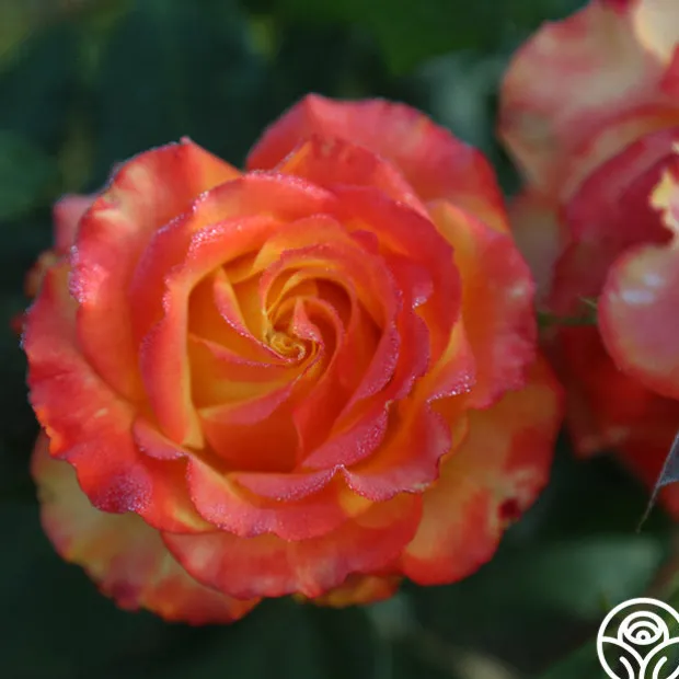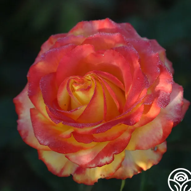 Tequila Sunrise is a very striking rose. If you like brightly colored roses, the rich, deep yellow petals edged in hot scarlet red will call to you. Her dark green leaves provide the perfect foliage for her 4″ flower with 40+ petals. This continual bloomer is very popular in Europe and New Zealand and was the winner of England’s Royal National Rose Society Gold Medal in 1988.