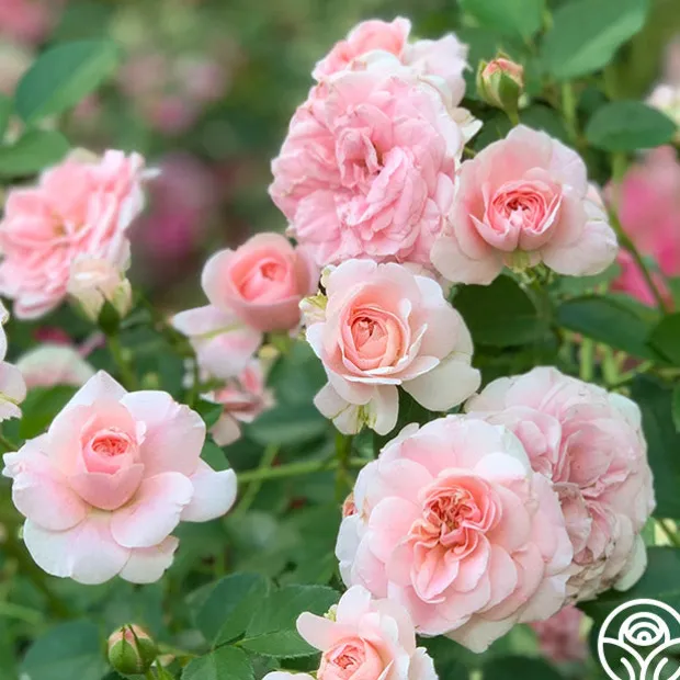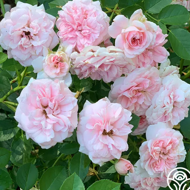 Imported from France. ‘The Fawn™’ produces beautiful, fully double old-fashioned, English- style 3 1/2″ blooms (petals 80+) of soft pink in absolute profusion that truly cover this shrub rose bush. Its shiny, mid-green foliage is almost completely hidden by the abundance of bloom.