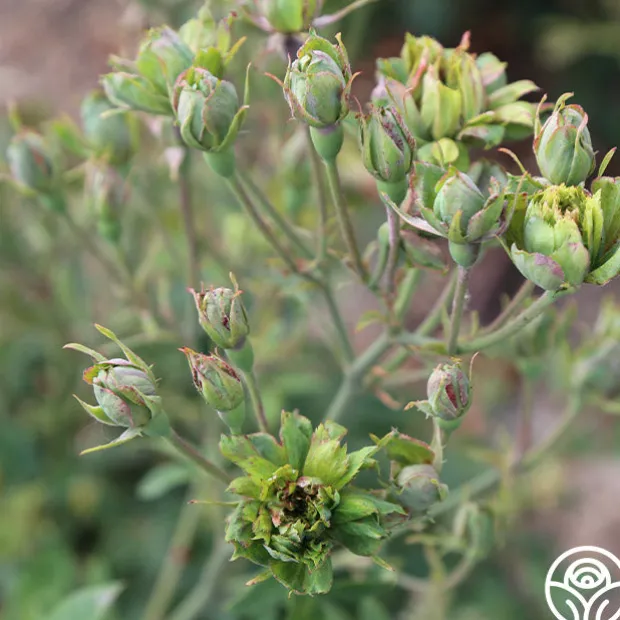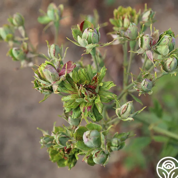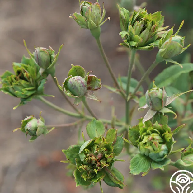 A descendant of Old Blush, The Green Rose (R. Chinensis viridiflora) is one of the most unique roses. This rose is a very hardy China variety first discovered around 1827 and introduced to the public in 1855. The Green Rose actually has no flowers, no petals, and no seeds! This sterile rose has been kept in gardens for centuries by committed growers propagating cuttings and sharing!