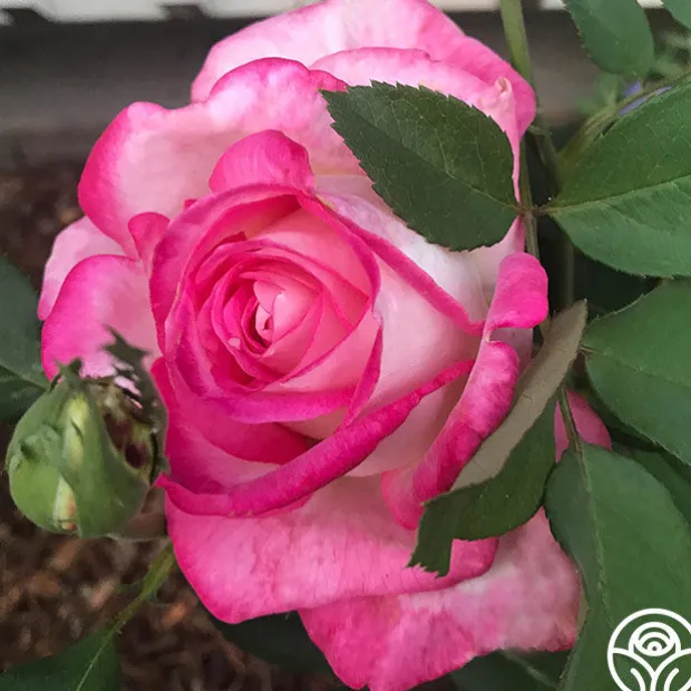 One cannot resist being enamored by the enchanting Hybrid Tea, My Caroline. Her captivating features include bright white petals kissed by vibrant pink tips painted with vivid watercolor strokes on pointed star-like petals, making her a beauty in any garden.