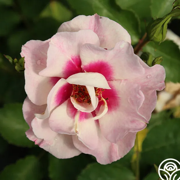 The cranberry eye zone set at the base of each creamy white petal on Bull’s Eye™ might remind you of Rose of Sharon. He keeps this novel marking up until the flower finishes too! This bushy plant has superb blackspot resistance and tends to have better growth habits and bloom capacity in colder climates. We recommend him for beds, borders or pots so you can enjoy his moderate fragrance.