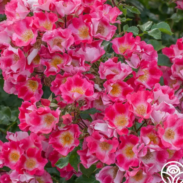 This mounding Shrub is very similar to Carefree Delight as it comes from the same breeding line but has better disease resistance, better growth habit, and improved bloom power. Carefree Spirit’s bright, non-fading, cherry red 2 ½” blossoms have a white eye and are produced in showy clusters in flushes during the blooming season. She is a 2009 AARS Winner and was selected as a Plant of Distinction in the 2014 UGA trials.