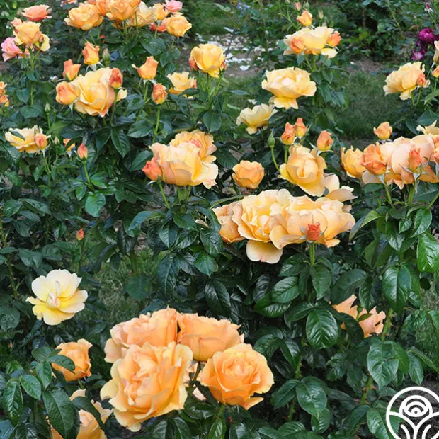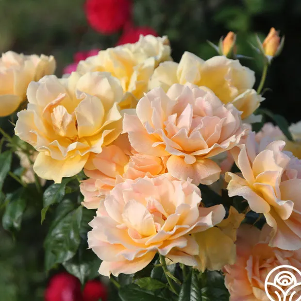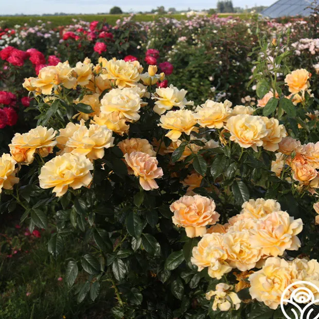 Easy Going™ has delightful, cupped 4-5″ blooms with 30+ petals of golden yellow with apricot to peach shading. Her flowers have a mild honey fragrance and will bloom repeatedly throughout the season against glossy, medium green foliage. She is a beautiful rose for zones 5-10.