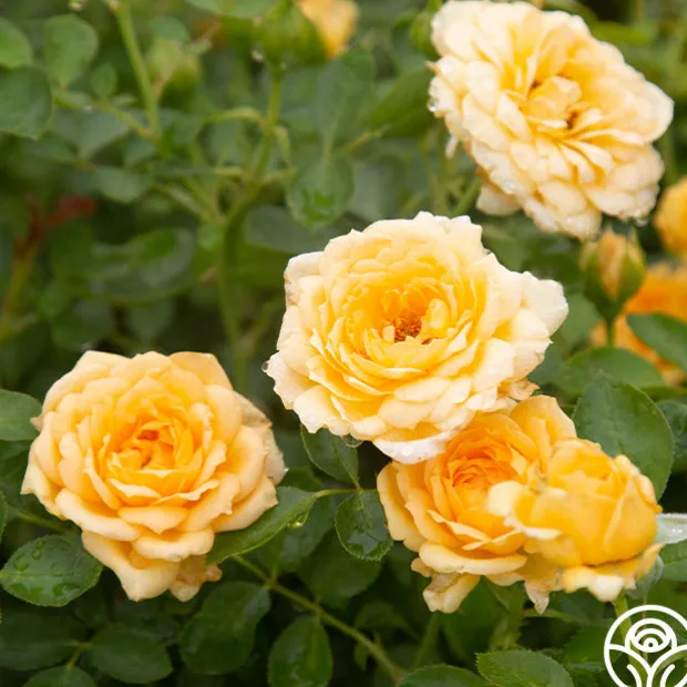 Edith’s Darling™, inspired by Downton Abbey, is a beautiful tribute to the fictional Lady Edith and her daughter Marigold. The full, old-fashioned soft apricot-gold blooms have 50-60 petals and are captivating in appearance. Edith’s Darling™ has a short, compact & bushy habit, perfect for landscape beds and containers. You’ll fall in love with her strong perfume of fresh cut apples and fruity scent.