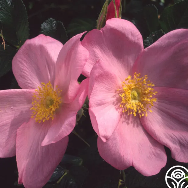Discovered in Denmark in 1914, Fru Dagmar Hastrup is a classic Rugosa with delicate, mid-pink flowers and a bushy growth habit. Her single, cupped blooms emit a strong fragrance. Expect her to produce large, deep red hips late in the summer and have extraordinarily colorful fall foliage. Fru Dagmar Hastrup is a perpetual bloomer that is drought resistant and thrives well in zones 3-9.