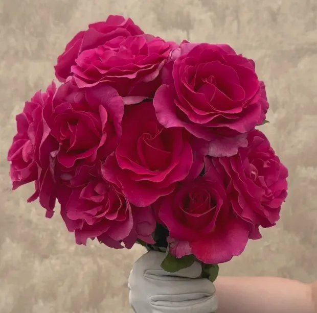 Gentle Giant™ is a beauty of a rose featuring extremely large and lusciously rich, pink blossoms with an inner yellow glow on very long stems. Just a few blooms will fill a vase or make a significant statement in a bouquet. Growing well in containers, she has long, sleek stems and unusually light green foliage. Gentle Giant™ is a repeat bloomer and does best in zones 6-10, with her blossoms performing at their best in cooler temperatures. Give this rose space to grow as she will top out around 6 ft tall!