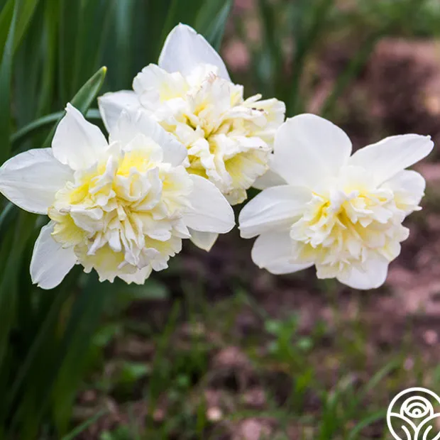 Note: Bulbs ship starting in October based on availability and your zone, unlike other products. Plant around or after your first frost but before the ground freezes. Ice King is a double Daffodil with a very full, ruffled center instead of the usual daffodil cup shape. An excellent naturalizer, Ice King will spread throughout your garden year after year. We love his crimped central petals. This fragrant Daffodil makes an excellent cut flower and will reach 18” tall. It is deer resistant and easy to grow for zones 3-9.