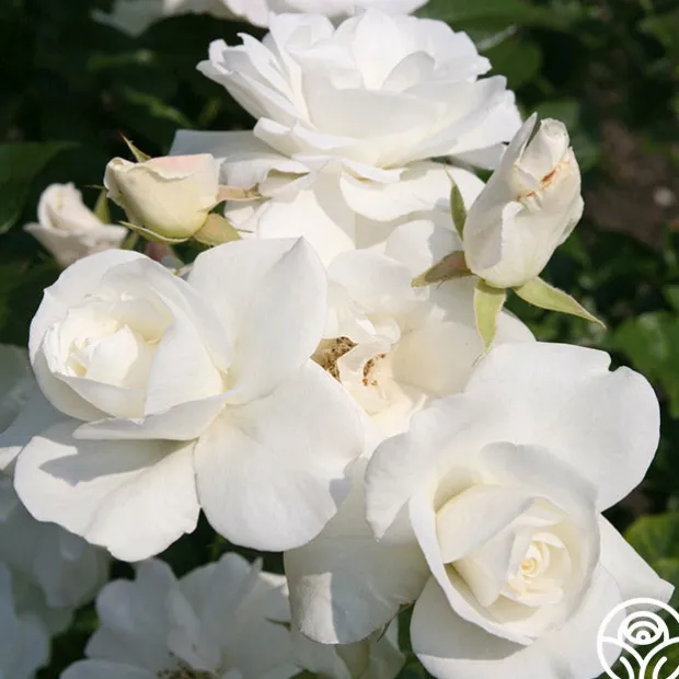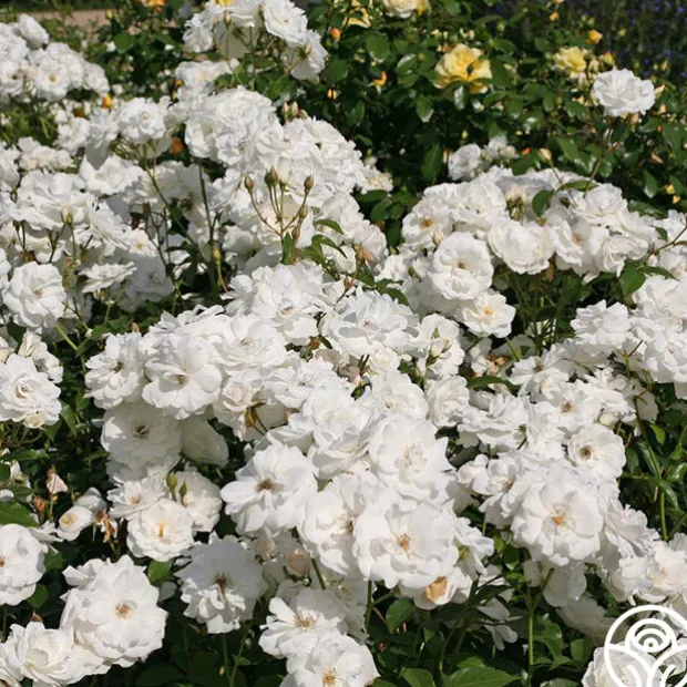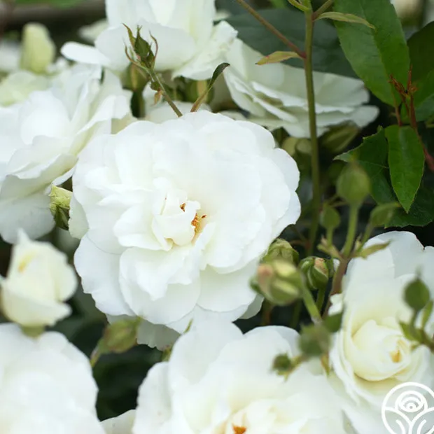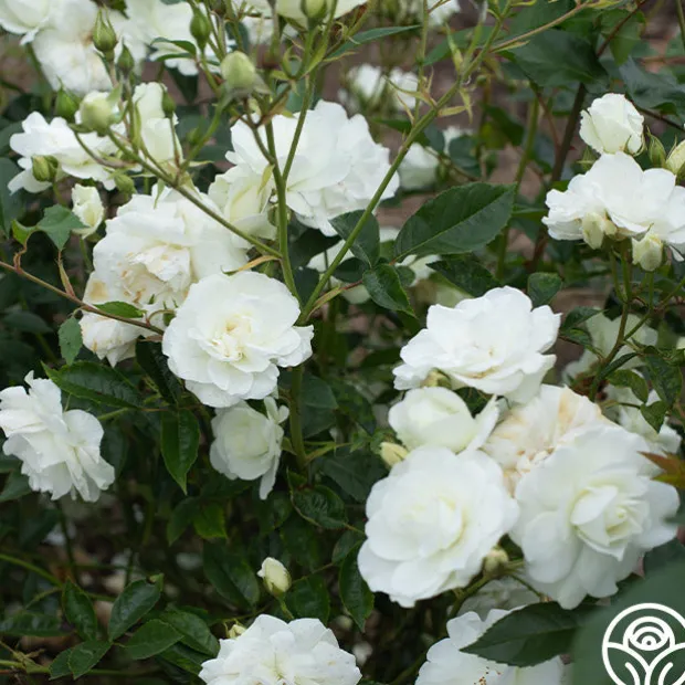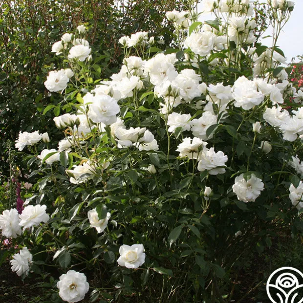 We have listed Iceberg® as a Shrub rose because we feel it fits here better than the Floribunda class. Iceberg® is one of the finest roses ever developed with large, double, 3” blooms with up to 24 petals. Her pure white flowers are borne in absolute abandon on a strong-growing bush with shiny mid-green foliage.
