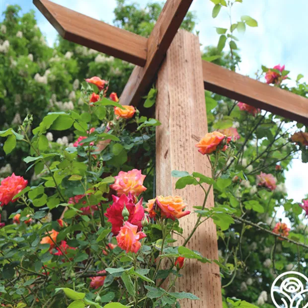 TOP SELLER! This Climber makes a great addition to a cutting garden, and it can be grown as a large climber or as a shrub. Joseph’s Coat produces medium sized, semi-double, 4″ blooms with 12+ petals of cherry-red, deep gold, and orange. He is an upright, hardy, continually blooming plant with dark-green, glossy foliage. Brighten up your garden with the many colors of Joseph’s Coat, and you’ll soon see why he is a top seller!