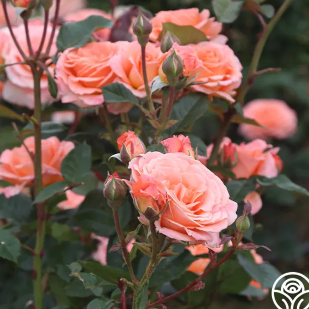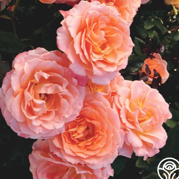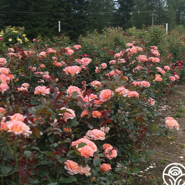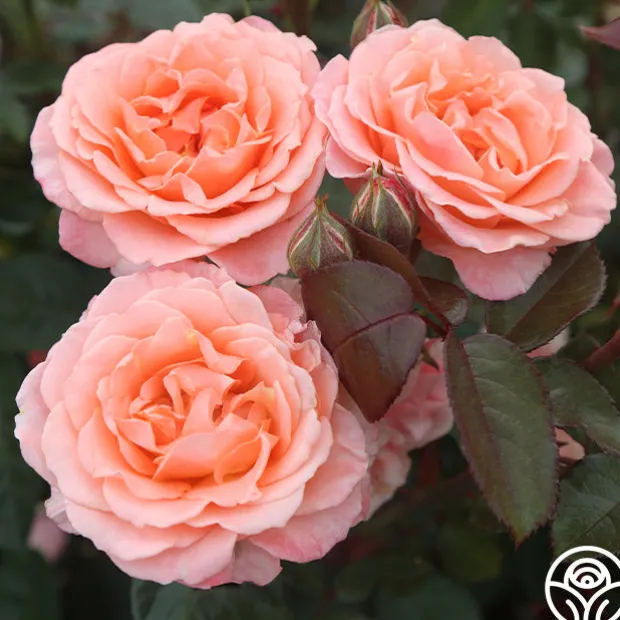 Jump for Joy™ is a Floribunda rose with large 3-4″, ruffled blooms that are borne in clusters on a round, bushy shrub. The delicious, peachy-pink color pairs well with its light apple fragrance. Expect her dark red new growth to pop against glossy, green foliage. We recommend planting Jump for Joy™ alone or with her sister seedling, Sparkle & Shine™ for a burst of color in your garden.