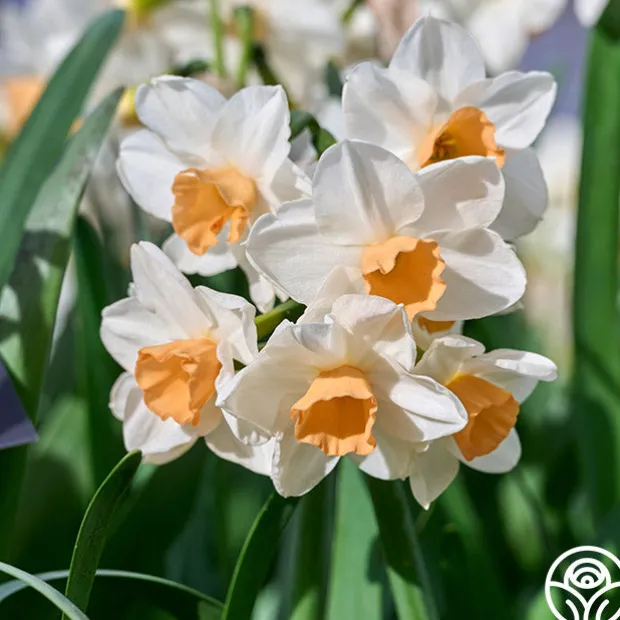 Note: Bulbs ship starting in October based on availability and your zone, unlike other products. Plant around or after your first frost but before the ground freezes. Kapiti Peach is a fragrant Tazetta, or bunch-flowering Daffodil, featuring clusters of 3–5 sweet-scented blooms per stem, each with bright white petals and a ruffled apricot-peach cup that deepens with age. Standing about 14–16″ tall, it brightens mid-spring borders and makes lovely cut flowers. Hardy in Zones 3–9, it’s deer resistant and naturalizes well.