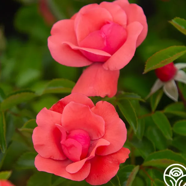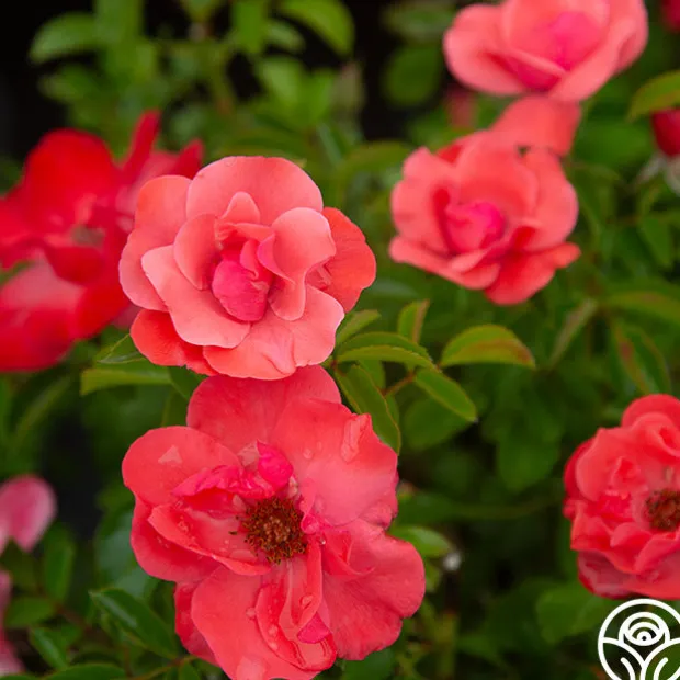 Lady Elsie May™ is a delightful plant with orange-pink, semi-double, 4″ blooms with 16+ petals. Her blossoms are produced in clusters that fill out this shorter sized rose. She has very glossy, dark green leaves on this perfect repeat blooming rose. We love Lady Elsie May™ for containers, borders and walkways.