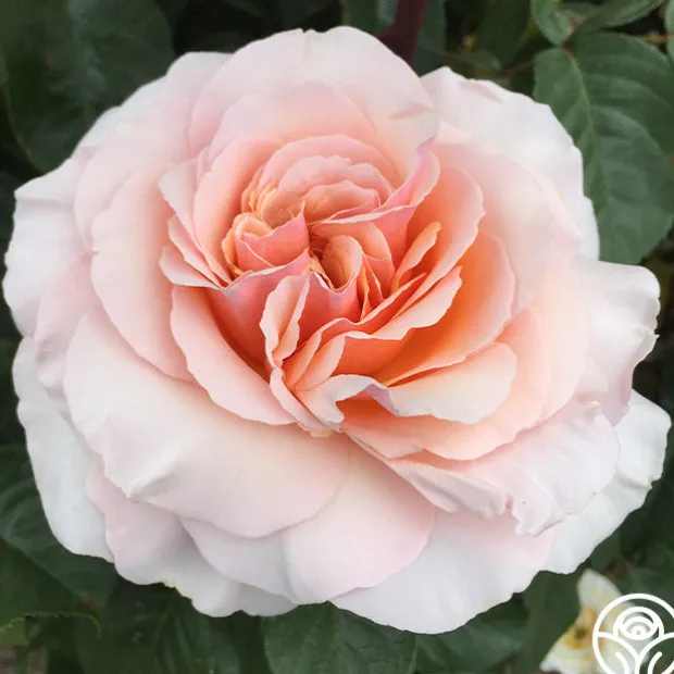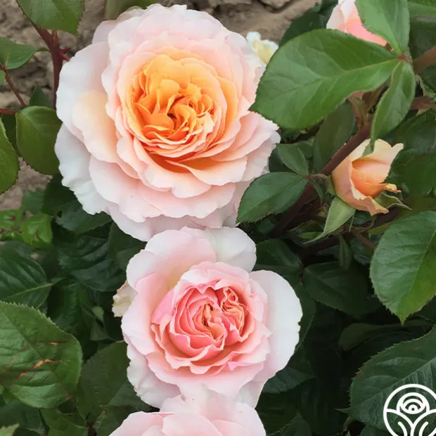 An elegant beauty that consistently looks lovely in the garden, Lady Jane Grey™ is named for a Queen of England. Her old-style, 5” blooms with 60+ petals are rose amber overlaid with blush pink and an inner hint of honey. She has a wonderfully strong perfume that is a joy to bring indoors. Her blooms are borne on a continual blooming, upright bush with leathery, dark green, shiny leaves.