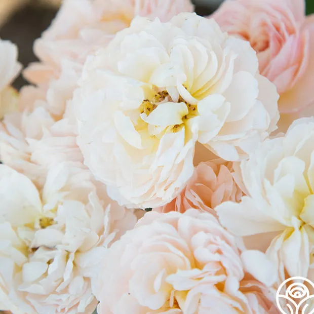 Enjoy a romantic Moonlight In Paris™ with this rose in your garden. This lovely Shrub is loaded with romantic blooms that age from deep apricot with a gold center to light pink. She has a moderate, fruity and spice fragrance drifting from her old-fashioned and full cupped blooms that flower in small clusters. Expect Moonlight in Paris™ to bloom in flushes throughout the season.