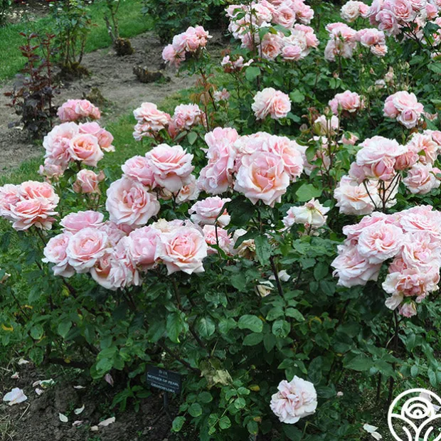 Named the Best Shrub Rose by Birds and Bloom in 2014, Mother of Pearl® delights gardeners with her winter hardiness and high resistance to black spot making her ideal for cooler or hot and humid climates. This Grandiflora begins with medium buds that open to display light, pearly-pink blossoms with peachy overtones. Her medium green, semi-glossy, dense foliage is displayed on a tall and upright bush, highlighting her 2.5” medium to large blooms. Mother of Pearl® produces small clusters of blooms with one to four flowers per stem with 26-40 petals on each blossom. Her light, refreshing fragrance delicately adorns this plant like a mother’s gentle perfume. Plant en masse for a stunning and prolific display of creamy roses.