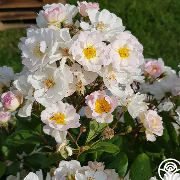 NEW INTRODUCTION 2023! Never Forget Rose® is an easy-to-grow, Hybrid Musk rose that begins with gentle, pink buds that burst into clusters of white blooms with a delicious scent. Created by Fabien Ducher of France, this vigorous white rose is named to honor the Tomb of the Unknown Soldier, in honor of its 100th anniversary. Never Forget Rose® is a vigorous rose that will stand out in your garden as a memorable centerpiece with historical significance.