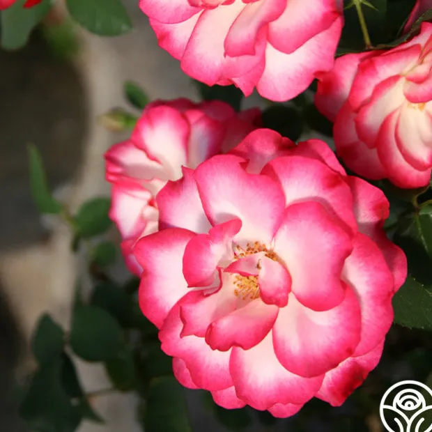 Nicole® is a lovely Floribunda with outstanding 3-4” blooms with 35+ petals in crystal white brushed with pink toward the petal edges. She has large, dark green, semi-glossy leaves and is a continual blooming bush. Nicole® is a vigorously growing bush with a light fragrance. Gardeners love her color changing as her flowers age.