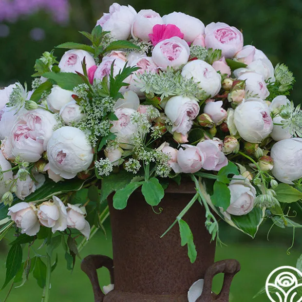 TOP SELLER! Parfuma® Earth Angel is an exceptionally fragrant peony-shaped rose with bright, glossy green foliage. It’s easy to see why everyone loves her. Her upright form holds blooms in varying color from white to soft pink that change as the plant matures. Parfuma® Earth Angel is an old-fashioned rose with a very unique fragrance. Her scent begins with a fruity top note of lemon, then champagne, a hint of elder flower and dash of raspberries. She is what we imagine “freshness” would smell like. Her finish is a light sweetness of fresh apples and a classic rose bouquet. Give her a few years to establish and her bloom shape and scent will become more and more true to form.